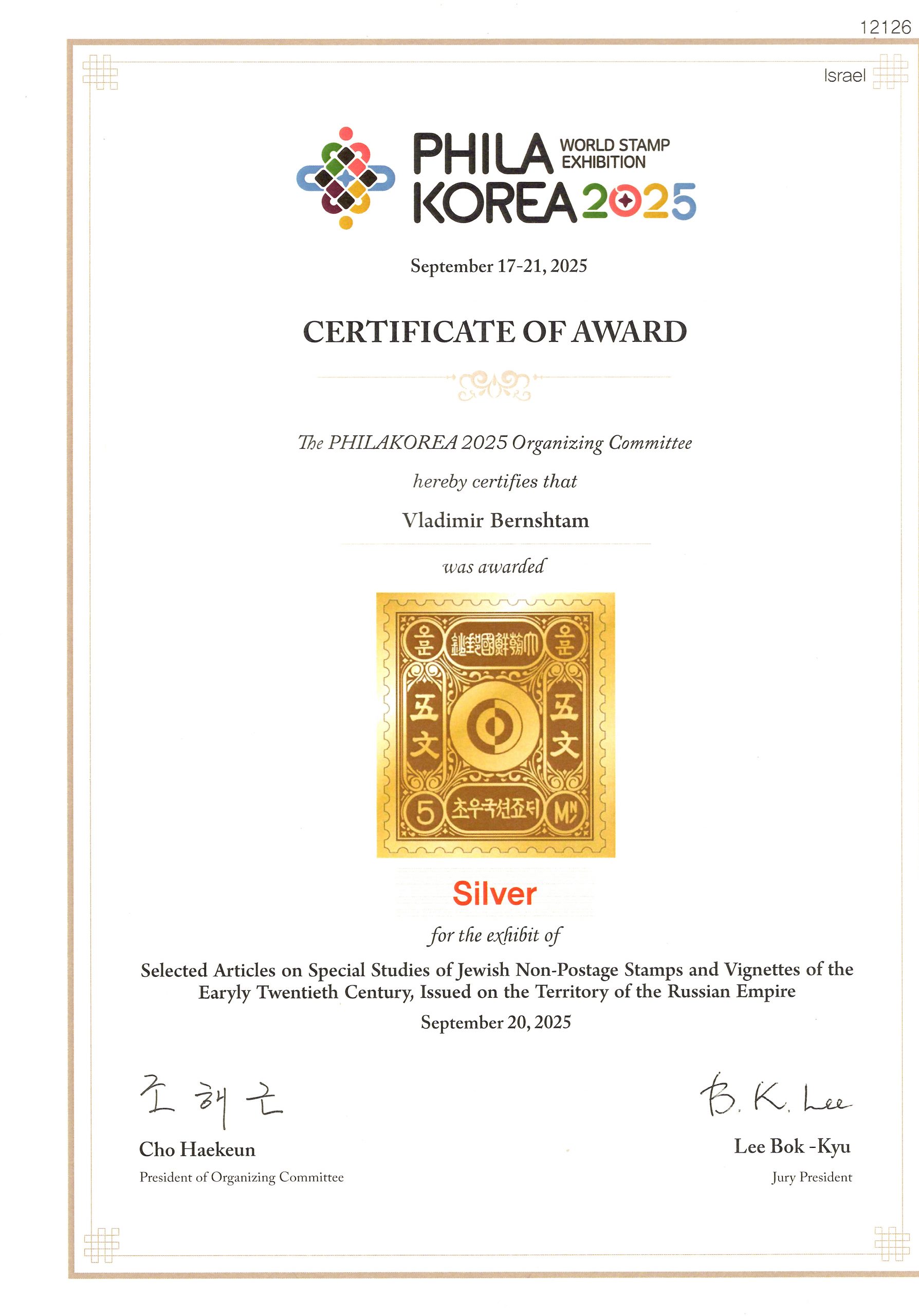 2025 Всемирная выставка марок KOREA 2025 (The world stamps exhibition KOREA 2025) Серебряная медаль (Silver medal)